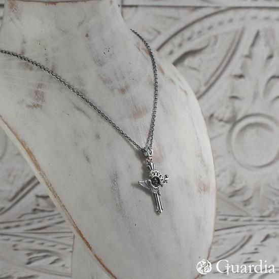 その響きをモチーフに、クロスを中心に翼が広がり、聖堂の装飾が重なるようにデザインされたペンダント。